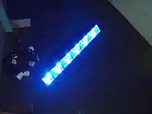 D'autres appareils de même conception formaient le luminaire scénique : ce sont les herses horizontales au-dessus des décors et les portants verticaux placés dans les coulisses. Ces équipements ne sont plus en usage.