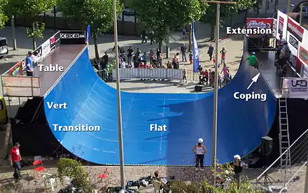 Les BMXeurs, skateurs ou rollermen descendent le long de la rampe d'un côté, prenant ainsi de l'élan pour remonter en flèche le long de l'autre. Les « riders » peuvent ainsi effectuer des figures (ou tricks) le long du « coping » (le bord de la rampe) ou dans les airs.
