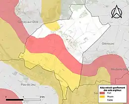 Les mouvements de terrains susceptibles de se produire sur la commune sont des affaissements et effondrements liés aux cavités souterraines (hors mines) et des tassements différentiels[23]. Afin de mieux appréhender le risque d’affaissement de terrain, un inventaire national permet de localiser les éventuelles cavités souterraines sur la commune[24]. Le retrait-gonflement des sols argileux est susceptible d'engendrer des dommages importants aux bâtiments en cas d’alternance de périodes de sécheresse et de pluie[25]. 54 % de la superficie communale est en aléa moyen ou fort (79,5 % au niveau départemental et 48,5 % au niveau national)[26]. Depuis le , en application de la loi ÉLAN, différentes contraintes s'imposent aux vendeurs, maîtres d'ouvrages ou constructeurs de biens situés dans une zone classée en aléa moyen ou fort[Note 4],[27].
