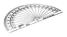 Le rapporteur trigonométrique est un instrument de mesure matérialisant le cercle trigonométrique et fournissant une correspondance degrés-radians.