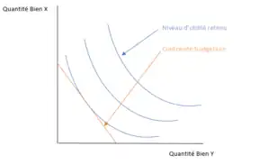 Certains auteurs (Walras, Jevons, Menger) se sont d'ailleurs intéressés à la modélisation mathématique du niveau de satisfaction retenu à la suite de la consommation d'un bien. Cette fonction, dite d'utilité, cherche à rationaliser la prise de décision et d'estimer l'impact qu'elle aura sur notre niveau d'utilité. Elle attribue donc un montant de satisfaction à un choix de consommation. C'est pourquoi, les courbes d'indifférence présentent, pour un niveau d'utilité constant, les différentes combinaisons de biens X et Y possibles. En d'autres termes, notre utilité dépend de la consommation d'un panier de bien et pour ce panier on attribue un niveau d'utilité. Chaque coordonnée de la courbe d'indifférence correspond à ce niveau d'utilité. Cette utilité est cardinale. Si le panier évolue et modifie le niveau d'utilité, c'est toute la courbe qui se déplace.