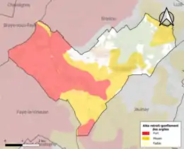 Le retrait-gonflement des sols argileux est susceptible d'engendrer des dommages importants aux bâtiments en cas d’alternance de périodes de sécheresse et de pluie. 71,6 % de la superficie communale est en aléa moyen ou fort (90,2 % au niveau départemental et 48,5 % au niveau national). Sur les 139 bâtiments dénombrés sur la commune en 2019, 127 sont en aléa moyen ou fort, soit 91 %, à comparer aux 91 % au niveau départemental et 54 % au niveau national. Une cartographie de l'exposition du territoire national au retrait gonflement des sols argileux est disponible sur le site du BRGM[22],[23].