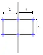 On cherche à savoir combien de points au maximum peuvent se trouver dans ce rectangle, sachant que deux points situés du même côté de la droite de partition sont distants d'au moins . La réponse est 8 : un à chaque coin, et un couple de points superposés situé à chacun des milieux des grands côtés du rectangle[3]. Cet argument repose sur l'intuition géométrique et n'est pas adapté à une formalisation rigoureuse, mais peut être remplacé par une utilisation du principe des tiroirs qui donne la même borne de manière rigoureuse[4]. Par conséquent au plus 7 autres points de la bande ont une ordonnée supérieure de moins de à l'ordonnée du point . On peut donc trouver en calculant au plus 7 distances depuis . On peut donc trouver une paire minimale si elle existe au sein de la bande en calculant pour chacun de ses points les distances qui le séparent des 7 points qui le suivent dans [3].