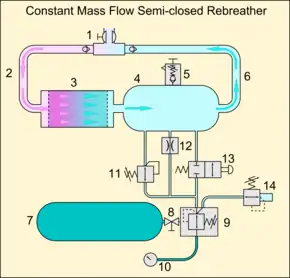 - ceux à mélange constant, les appareils à circuit semi fermé (en anglais SCR, Semi Closed Rebreather). L'appareil injecte systématiquement le même gaz, le plongeur respire donc un mélange dont la composition ne varie pas.