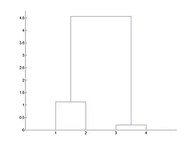 Un dendrogramme est la représentation graphique d'une classification ascendante hiérarchique. Il se présente souvent comme un arbre binaire dont les feuilles sont les individus alignés sur l'axe des abscisses. Lorsque deux classes ou deux individus se rejoignent avec l'indice d'agrégation , des traits verticaux sont dessinés de l'abscisse des deux classes jusqu'à l'ordonnée , puis ils sont reliés par un segment horizontal.