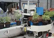 L’utilisation d’une rempoteuse permet de faire gagner et d’assurer une uniformité dans le rempotage des plantes sur une ligne de production[1].