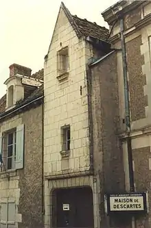 Issu d'une famille de la petite noblesse, il est le troisième enfant de Joachim Descartes (Châtellerault, - Sucé-sur-Erdre, [9]), conseiller au parlement de Bretagne à Rennes[n 4], et de Jeanne Brochard (née probablement à La Haye-en-Touraine, aujourd'hui Descartes (Indre-et-Loire) vers 1566, morte au même endroit). Il naît le 31 mars 1596 probablement à La Haye[n 1] chez ses grands-parents maternels, où sa mère effectua tous ses accouchements, son père étant de service à Rennes au moment de sa naissance[n 5]. Il est baptisé le en l'église Saint-Georges (la maison de la grand-mère relevait normalement de la paroisse Notre-Dame, mais elle avait été dévolue au culte protestant). Son premier parrain, René Brochard des Fontaines, parent de sa mère, est juge à Poitiers ; le second, Michel Ferrand (frère de sa grand-mère paternelle), est lieutenant-général du roi à Châtellerault.