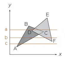 Le rendu Scanline est, en infographie 3D, un algorithme pour la détermination de surface visible qui fonctionne ligne par ligne plutôt que polygone par polygone ou encore pixel par pixel. Le principe consiste à trier les polygones selon leur ordre de profondeur, pour ensuite calculer l'intersection entre la projection du pixel voulu et le premier polygone rencontré de la liste triée.
