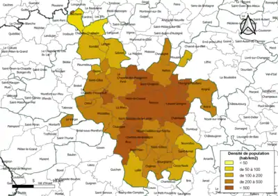 - Les densités de population sont calculées automatiquement dans un SIG en utilisant la surface géométrique de la commune, avec un niveau de précision du contour de 5 m tel qu'il ressort de l'export du découpage administratif au niveau communal (contours des communes) issu d'OpenStreetMap, et non la superficie cadastrale définie par l'Insee, qui est une donnée purement administrative. Des différences de classe peuvent ainsi éventuellement apparaître pour les communes qui se situent en limite de franchissement de seuil de classe.