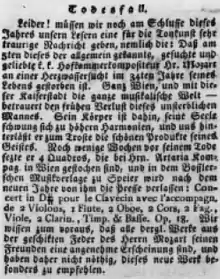 - Alexandre Oulybychev, Nouvelle biographie de Mozart : suivie d'un aperçu sur l'histoire générale de la musique et de l'analyse des principales œuvres de Mozart, t. 3, Moscou, A. Semen, (lire en ligne), « Requiem », p. 419