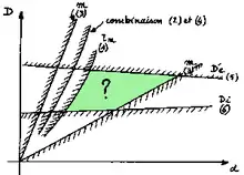 La détermination peut être faite au moyen d'abaques et l'on a fabriqué jadis des règles à calcul spéciales. Nous pouvons aussi tracer sur un même graphique les courbes correspondant aux diverses conditions ci-dessus : elles définissent, sauf pour les malheureux qui sont poursuivis par la scoumoune, une zone plus ou moins étendue dans laquelle peuvent être choisies de nombreuses combinaisons de d et D.