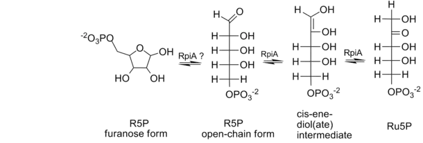 La ribose-5-phosphate isomérase ou la ribulose-5-phosphate isomérase est une enzyme qui catalyse l'isomérisation réversible du ribose-5-phosphate (R5P) en ribulose-5-phosphate (Ru5P) :