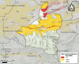 Les mouvements de terrains susceptibles de se produire sur la commune sont soit des chutes de blocs, soit des glissements de terrains, soit des effondrements liés à des cavités souterraines, soit des mouvements liés au retrait-gonflement des argiles. Près de 50 % de la superficie du département est concernée par l'aléa retrait-gonflement des argiles, dont la commune de Rimont[27]. L'inventaire national des cavités souterraines permet par ailleurs de localiser celles situées sur la commune[28].