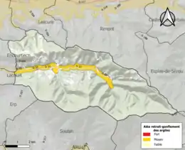 Les mouvements de terrains susceptibles de se produire sur la commune sont soit des chutes de blocs, soit des glissements de terrains, soit des effondrements liés à des cavités souterraines, soit des mouvements liés au retrait-gonflement des argiles. Près de 50 % de la superficie du département est concernée par l'aléa retrait-gonflement des argiles, dont la commune de Rivèrenert[38]. L'inventaire national des cavités souterraines permet par ailleurs de localiser celles situées sur la commune[39].
