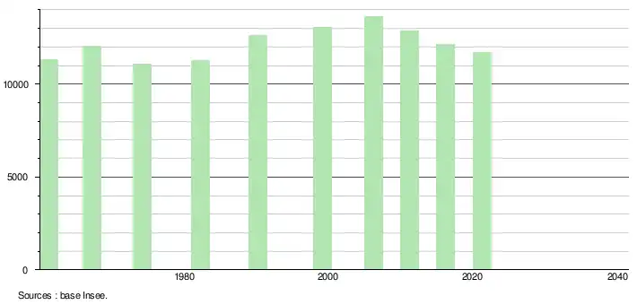 L'évolution du nombre d'habitants est connue à travers les recensements de la population effectués dans la commune depuis 1961, premier recensement postérieur à la départementalisation de 1946. À partir de 2006, les populations légales des communes sont publiées annuellement par l'Insee. Le recensement repose désormais sur une collecte d'information annuelle, concernant successivement tous les territoires communaux au cours d'une période de cinq ans. Pour les communes de plus de 10 000 habitants les recensements ont lieu chaque année à la suite d'une enquête par sondage auprès d'un échantillon d'adresses représentant 8 % de leurs logements, contrairement aux autres communes qui ont un recensement réel tous les cinq ans[14],[Note 3].