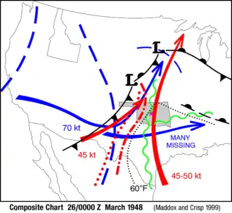 - (en) Robert A. Maddox et Charlie A. Crisp, « The Tinker AFB Tornadoes of March 1948 », Weather and Forecasting, AMS, vol. 14, no 4, , p. 492-499 (DOI 10.1175/1520-0434(1999)014<0492:TTATOM>2.0.CO;2, lire en ligne [PDF], consulté le ).