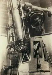 La lunette a une distance focale d'environ 6 000 mm pour des lentilles de 341 mm de diamètre dont 326 mm de diamètre utile. Une monture équatoriale en fonte est installée afin d'y placer l'instrument en équilibre et de pouvoir ainsi compenser le mouvement de rotation de la Terre avec un seul moteur de faible puissance[5].