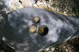 En amont, à quelques mètres de cette roche gravée se trouve un puits daté du , encore utilisé aujourd'hui.