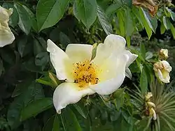 - Rosa × leonida ou 'Alba odorata' un grimpant à fleurs blanches doubles, Rosa bracteata × Rosa lævigata ;