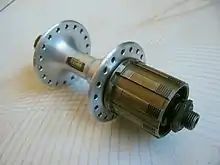 - le moyeu pour roue libre, ayant un côté fileté pour visser la roue libre[1]. On peut également y monter un pignon fixe (vélo de piste/fixie).