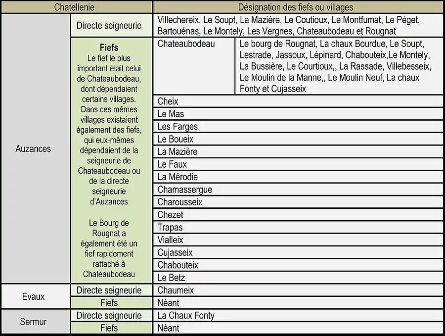 À partir de 1304, les cinq chatellenies du pays de Combraille (Auzances, Lépaud, Evaux, Chambon et Sermur) ont formé un bailliage régi par la Coutume d'Auvergne.