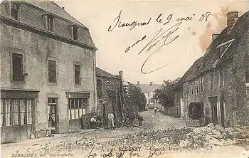 C'est également l'abbé Verrier qui entreprit l'échange de l'ancien presbytère avec la maison de Marie Vialtaix, boulangère, que l'on voit sur la droite de la carte postale. Le presbytère précédent, que l'on aperçoit au fond de la rue sur la même carte, était un don de la famille Dupoux.
