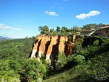 Au XVIIIe siècle, avec l'augmentation des besoins en fer, mais aussi la diversification et modernisation des techniques de traitement des textiles (métiers à tisser) et besoin de teintures, l'exploitation de l'ocre sur Roussillon s'intensifie. De très nombreuses carrières, dont certaines sont toujours visibles, entourent le bourg, mais aussi d'anciennes usines d'ocre (comme l'ancienne usine Mathieu maintenant reconvertie en Conservatoire)[17],[18]. Ces carrières et usines étaient disséminées sur plusieurs communes. En plus de Roussillon, on peut noter Villars, Gargas, Rustrel (et son Colorado provençal) et Gignac.