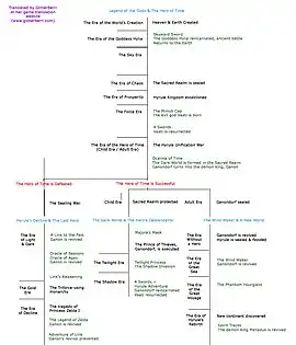 - Link réussit à vaincre Ganon : la princesse Zelda renvoie le Héros du Temps à l'époque de son enfance, sept ans auparavant, pour qu'il dénonce Ganon et annule son règne à venir. Ganondorf est jugé pour ses crimes mais parvient à s'extraire de ses chaînes, il se rend dans un lieu crépusculaire dont il va devenir le maître et emporte avec lui l'arme puissante qui était censée le mettre à mort. C'est la chronologie de Link enfant.