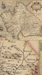 Avec l'arrivée des Suèves d'Europe centrale entre 409 et 411[5], la Galice cesse d'être la province romaine Gallaecia[6], pour devenir finalement un royaume dont la cour est installée à Braga, un royaume que les Suèves tentent rapidement d'agrandir vers le sud aux dépens de l'Empire romain, en incorporant à leur domaine, et de façon permanente, une bonne partie de la province romaine de Lusitanie, et en parvenant même à y inclure temporairement sa capitale Emerita Augusta (devenue Mérida)[7] en 439, et même la ville de Séville en 441, villes qui sont finalement abandonnées à la suite de la réaction des Wisigoths, dont l'épisode le plus important est la bataille de la rivière Órbigo.