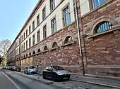 La rue Calvin en direction de la rue Munch. À gauche, l'ancienne manufacture des tabacs. | |
