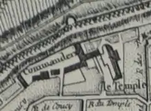La rue du Temple qui était citée en 1600, est prolongée, en 1841, par l'absorption de la « rue des Écus », d'une partie de la « rue de Coucy » et de la « place Cana »[1].