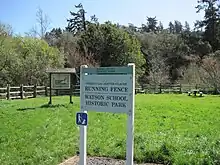 La clôture débute près de la U.S. Route 101 et traverse 14 routes et 59 ranchs afin d'atteindre l'océan Pacifique près de la baie de Bodega. Elle serait en partie inspirée par les clôtures marquant le Continental Divide au Colorado[2].