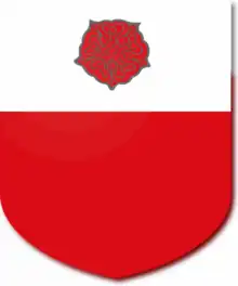 Les armes des Ruzzini se composent de gueules au chef d'argent chargé d'une rose percée aussi de gueules ou en 1310, coupé, au 1, d'argent, à une rose de gueules, boutonnée d'or, au 2, de gueules plein.