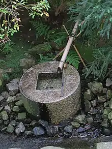 Le tsukubai constitue l’autre intérêt du temple. Le bassin de forme carré fait référence au kanji 口 (kuchi) qui signifie « bouche ». De chaque côté du carré est gravé un signe qui, associé à 口 donne à chaque fois un nouveau kanji : 吾, 唯, 足, 知. Associés, on obtient la phrase « Ware, tada taru wo shiru », « Je connais seulement la satisfaction » (sous-entendu, je n’ai pas beaucoup), un concept cher à la mouvance zen du bouddhisme.