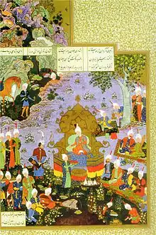 - John L. Esposito, L'histoire d'Oxford de l'Islam, Oxford University Press US, 1999. pp 364 : "Pour soutenir leur légitimité, la dynastie Safavide d'Iran (1501–1732) a adopté une politique culturelle visant à établir leur régime comme la reconstruction de la monarchie historique iranienne. À cette fin, ils ont commandé des copies élaborées du Shahnameh, l'épopée nationale iranienne, tel que celui-ci réalisé pour Tahmasp dans les années 1520."