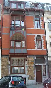 Au n° 19, la baie d'imposte protégée par une ferronnerie en feuilles et fleurs dessine un arc en plein cintre dont le sommet est occupé par un diable plaintif. Les consoles de l'auvent en pierre au-dessus de la porte d'entrée sont ornées de petites têtes sculptées. La baie vitrée du rez-de-chaussée en forme d'un bel arc outrepassé présente une allège sculptée de formes géométriques et florales. Le toit à trois pentes de l'oriel ainsi que le petit balcon central démontre de nouveau d'une grande audace dans cette construction.