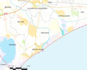 Le , le territoire de Sérignan est divisé en deux communes distinctes : Sérignan et Valras-la-Plage (nommée ainsi à l'époque)[47].
