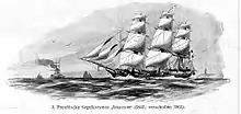 Il est achevé à Grabow (de) près de Stettin en 1843. En 1844, le premier grand voyage l'amène via l'Angleterre, le Portugal, Gibraltar, la Grèce et l'Empire ottoman jusqu'à la mer Noire. Une fois le voyage terminé, deux longs canons de 24 livres qui ont affecté la stabilité du navire sont retirés. En 1845, il navigue vers le Danemark, l'Angleterre et l'Espagne jusqu'à Gênes. En 1847, il traverse l'Atlantique pour New York.