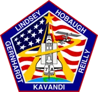 Devant : Kent Rominger et Jeffrey Ashby Derrière : Juri Lontschakov, Scott Parazynski, Umberto Guidoni, Chris Hadfield et John Phillips | ||||||||