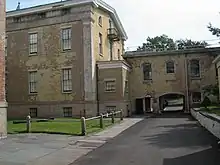 Le bâtiment E a été conçu par Richard Smyth et construit en 1880[22]. Le bâtiment se compose de deux étages ainsi que d'un sous-sol surélevé et d'un grenier ; il est de plan rectangulaire avec un toit à pignon. L'entrée principale contient un escalier sous un portique en pierre, composé de six colonnes supportant un fronton classique[25],[34]. La structure a été initialement conçue comme un dortoir[25]. Le bâtiment E n'est plus ouvert au public depuis 2018[29].