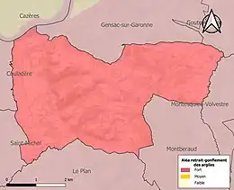 La commune est vulnérable au risque de mouvements de terrains constitué principalement du retrait-gonflement des sols argileux[36]. Cet aléa est susceptible d'engendrer des dommages importants aux bâtiments en cas d’alternance de périodes de sécheresse et de pluie. La totalité de la commune est en aléa moyen ou fort (88,8 % au niveau départemental et 48,5 % au niveau national). Sur les 131 bâtiments dénombrés sur la commune en 2019, 131 sont en aléa moyen ou fort, soit 100 %, à comparer aux 98 % au niveau départemental et 54 % au niveau national. Une cartographie de l'exposition du territoire national au retrait gonflement des sols argileux est disponible sur le site du BRGM[37],[Carte 3].