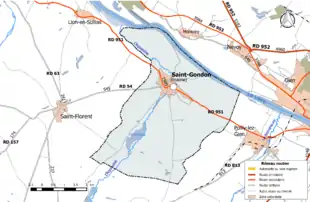 La commune de Saint-Gondon se trouve dans le quadrant sud-est du département du Loiret, dans la région agricole de la Sologne[2] et l'aire urbaine de Gien[3]. À vol d'oiseau, elle se situe à 52,6 km d'Orléans[4], préfecture du département, à 36,7 km de Montargis[5], sous-préfecture, et à 6,7 km de Gien, ancien chef-lieu du canton dont dépendait la commune avant . La commune fait partie du bassin de vie de Gien[3].