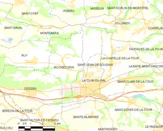 - L'autoroute A43, voie autoroutière qui relie la commune à Lyon et à Chambéry, mais également à l'A48 qui la relie à Grenoble grâce un échangeur situé entre la Tour-du-Pin et Bourgoin-Jallieu.