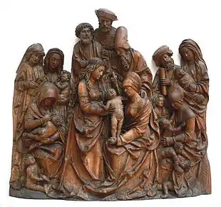 La Sainte Parenté désigne l'ensemble de la famille de Marie (mère de Jésus), descendants de sa mère sainte Anne et composée de ses parents et sœurs et des maris et enfants de celles-ci. Selon la tradition qui a ses origines dans des manuscrits apocryphes et qui est notamment détaillée dans La Légende dorée de Jacques de Voragine[1], elle est composée de 17 personnes. La Sainte Parenté est une thème populaire de l'iconographie du Saint-Empire romain, principalement dans la région correspondant à l'Allemagne et aux Pays-Bas actuels, et se retrouve dans de nombreuses formes : enluminures, vitraux, sculptures, hauts-reliefs et peintures de la fin du XVe siècle et le début du XVIe siècle. Ce thème est à rapprocher de la Trinité mariale (Anna Selbdritt en allemand) qui montre seulement sainte Anne, Marie et Jésus, de la Sainte Famille, où Anne est remplacé par Joseph, et enfin de la Sainte Trinité, sans présence féminine, composée de Dieu le Père, du Fils et du Saint Esprit.