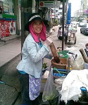 En Thaïlande, il est coutumier pour les clients de demander au cuisinier d'adapter le plat à leurs préférences. Som tam lao désigne la salade telle qu'elle est préparé au Laos ou à Isan, dans le nord-est du pays, alors que som tam thai désigne la salade préparée au centre de la Thaïlande[7]. Traditionnellement, les salades préparées dans les rues de Bangkok étaient très épicées car on y ajoutait une poignée de piments œil d'oiseau hachés. Toutefois, avec le gain en popularité de ce plat parmi les touristes, il est souvent servi moins épicé qu'autrefois.