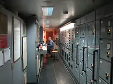 Le compartiment machine comporte généralement un poste de contrôle (PC machine) isolé d'où l'on peut visualiser les paramètres de fonctionnement et commander à distance les différents éléments. Ce poste de contrôle est climatisé afin d'assurer le bon fonctionnement des divers automates et ordinateurs, mais aussi d'améliorer les conditions de travail des mécaniciens de quart.