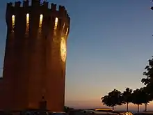 - Tour des Gualtieri (ou Torrione) - Plus correctement appelée "Mastio della Rocca" et plus populairement connue sous le nom de "Torrione" (lu Turriò ou lu Campanò), elle est peut-être l'élément le plus représentatif de la ville, se détachant des hauteurs de la Ville Haute pour dominer toute la ville. Elle a été réalisée dans les vingt dernières années du XVe siècle à la suite d'une restructuration des murs de la ville après l'un des nombreux conflits entre Ascoli Piceno et Fermo, vraisemblablement par la famille Gualtieri qui, vers l'année 1145, a commencé la reconstruction du château (au-dessus des ruines de l'ancienne église paroissiale qui est tombée en ruine aux mains des pirates turcs qui ont pillé la côte ou des invasions barbaresques), qui s'est terminée environ trois siècles plus tard avec la construction de cette tour[20]. La tour, de hauteur relativement modeste (20 m), de plan hexagonal aplati, est entièrement en brique, possède une horloge sur la face tournée vers la mer et un créneau supérieur réalisé lors de la restauration de 1901 sur un projet de l'architecte Giuseppe Sacconi. L'intérieur est divisé en quatre niveaux avec une toiture voûtée (canon à cuspide pour les deux premiers niveaux)[21].