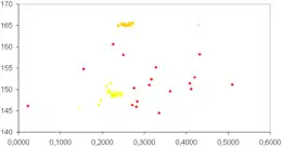 - groupe d'Himalia, reserré, dont les demi-grands axes sont de l'ordre de 11,86 ± 0,695 Gm et les inclinaisons de 27,5 ± 0,8° ; les excentricités varient de 0,11 à 0,25 ;