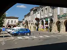 La place centrale carrée, dite place de la République, caractéristique d'une bastide est entourée d'arcades. L'hôtel de ville et le syndicat d'initiative s'y trouvent, ainsi que de nombreux commerces. Chaque mardi matin, la place accueille le marché.