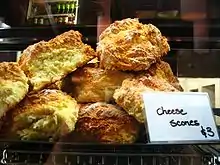 - (en) Cet article est partiellement ou en totalité issu de l’article de Wikipédia en anglais intitulé « Scone » (voir la liste des auteurs).